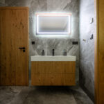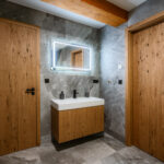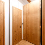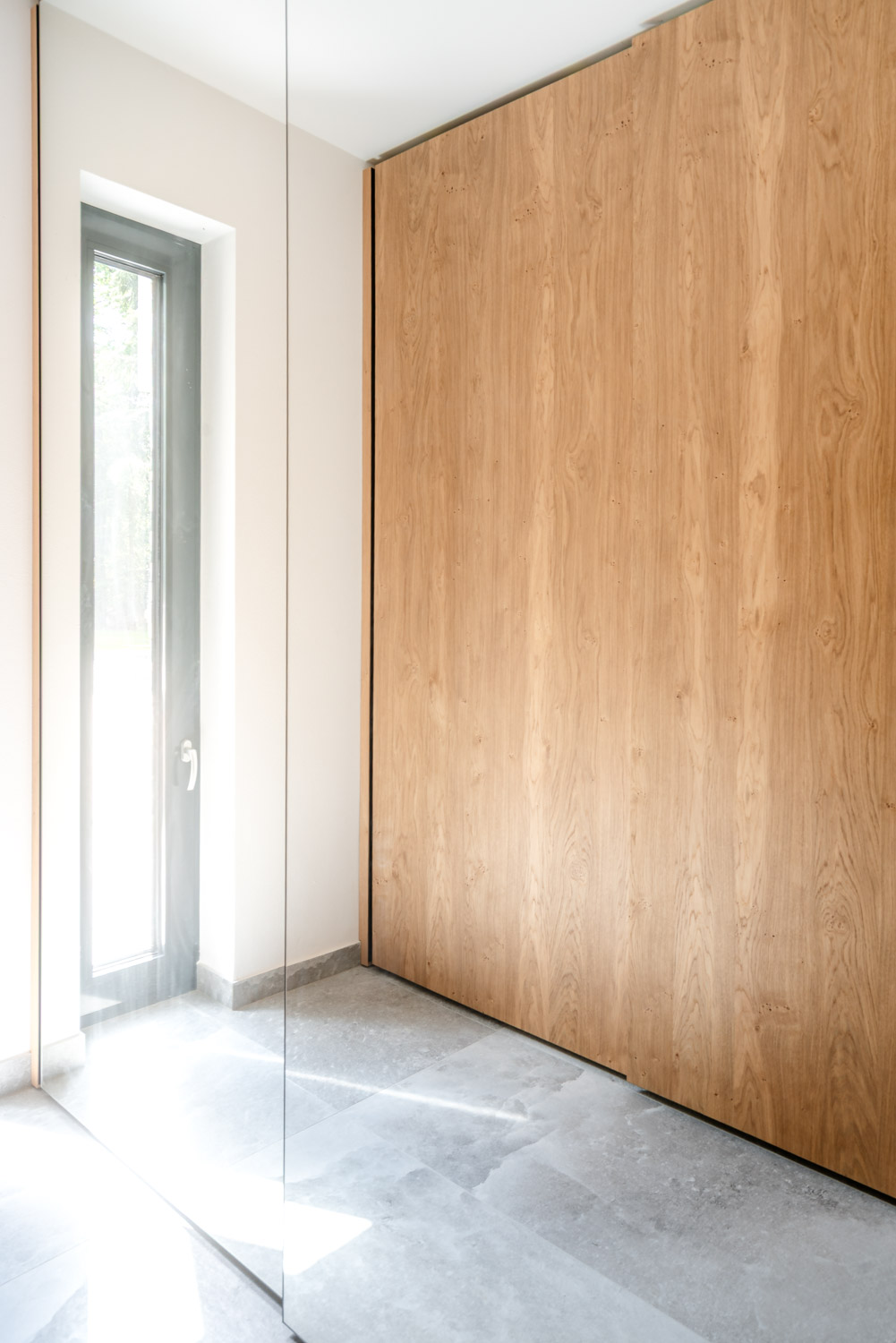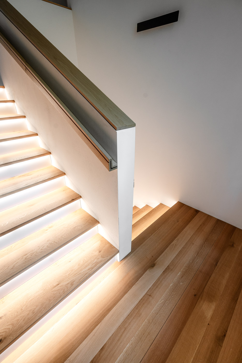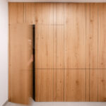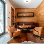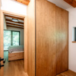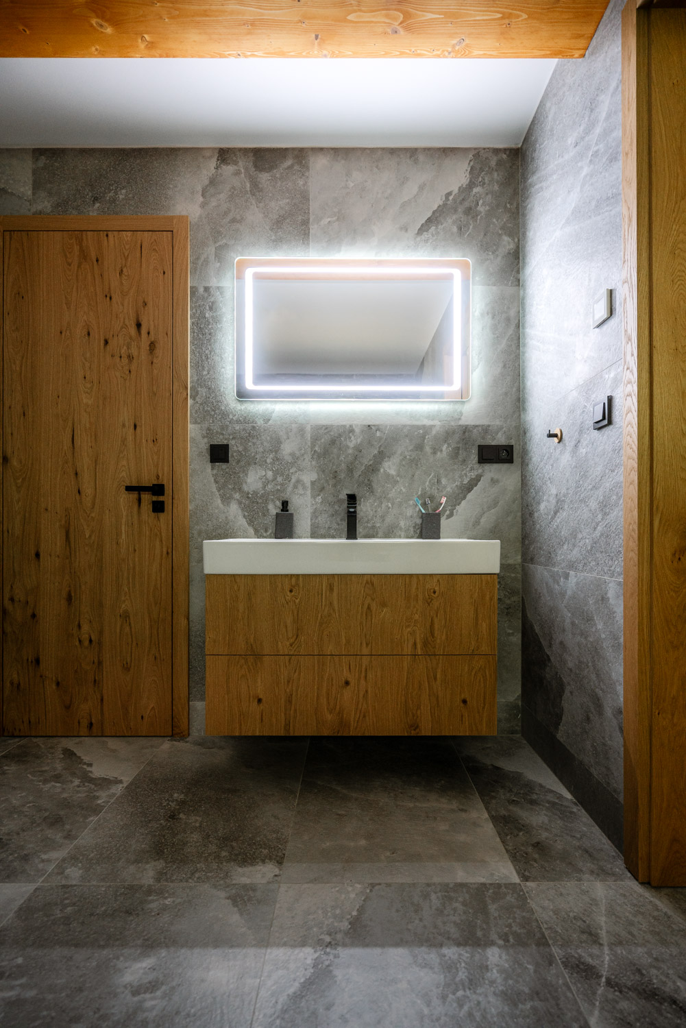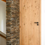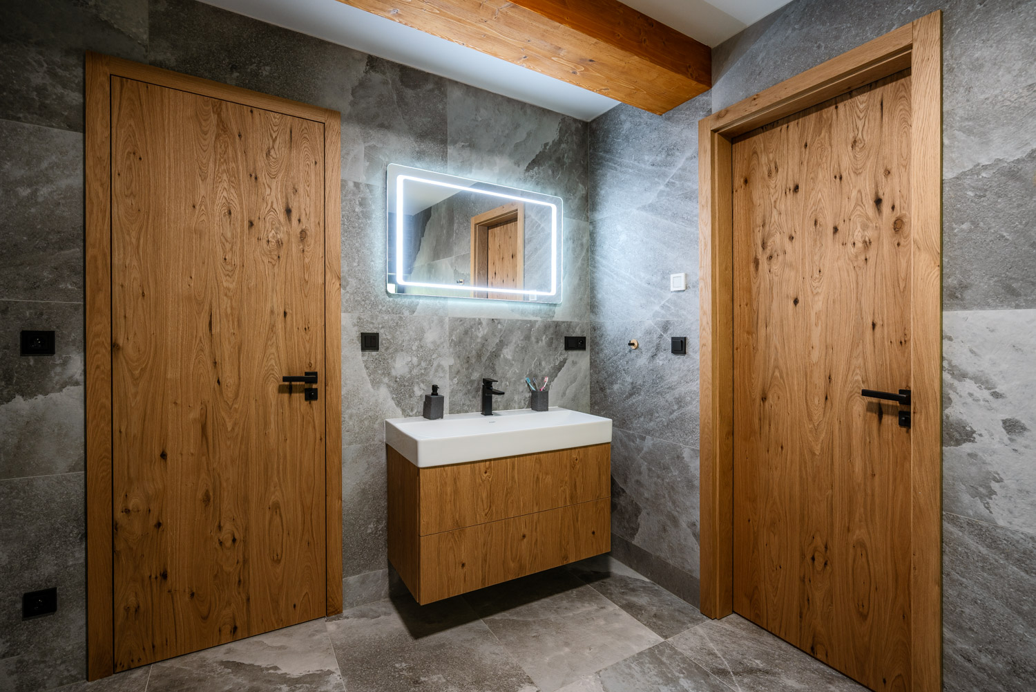 Kompletní interiér v přírodním duchu s dominantním použitím masivního dubu. Dřevěné podlahy, dveře i originální konferenční stolek ze surového kmene propojují celý prostor do harmonického celku. Součástí realizace byly také schody, vestavěné skříně a postele s levitujícím efektem.