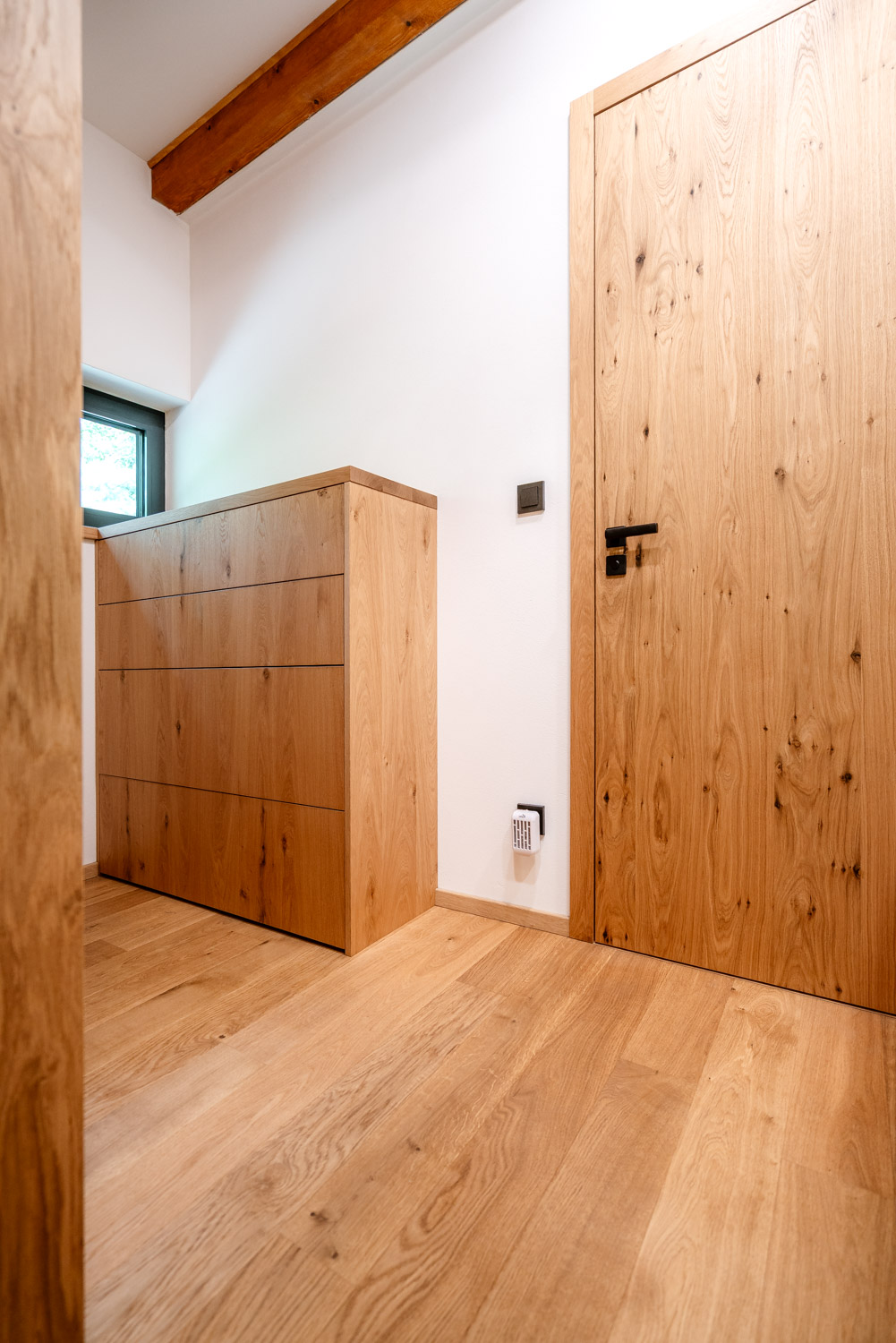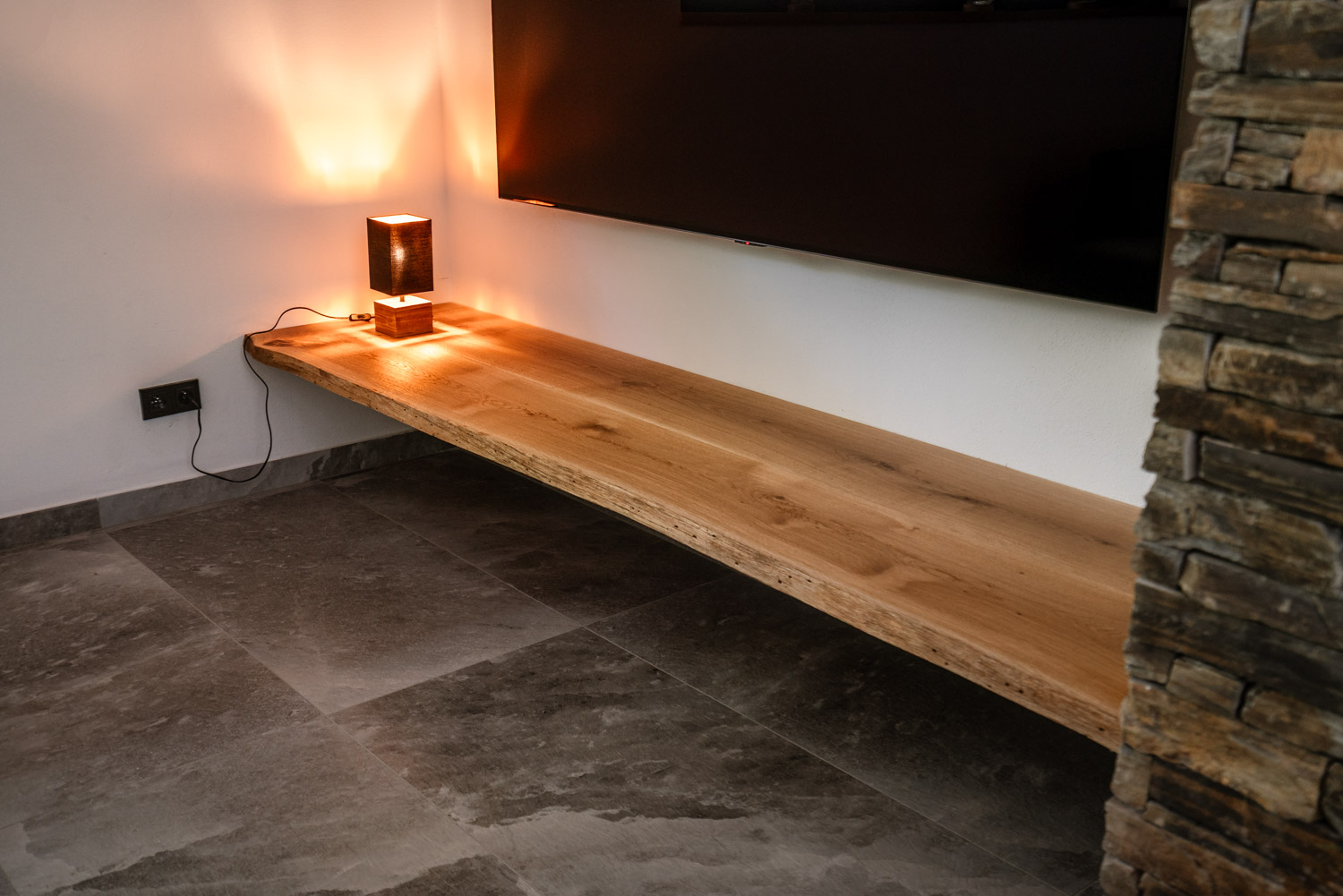 Realizace: dveře, podlahy, schody, skříně, postele, police, kuchyňská linka, obložení stěny, konferenční stolek